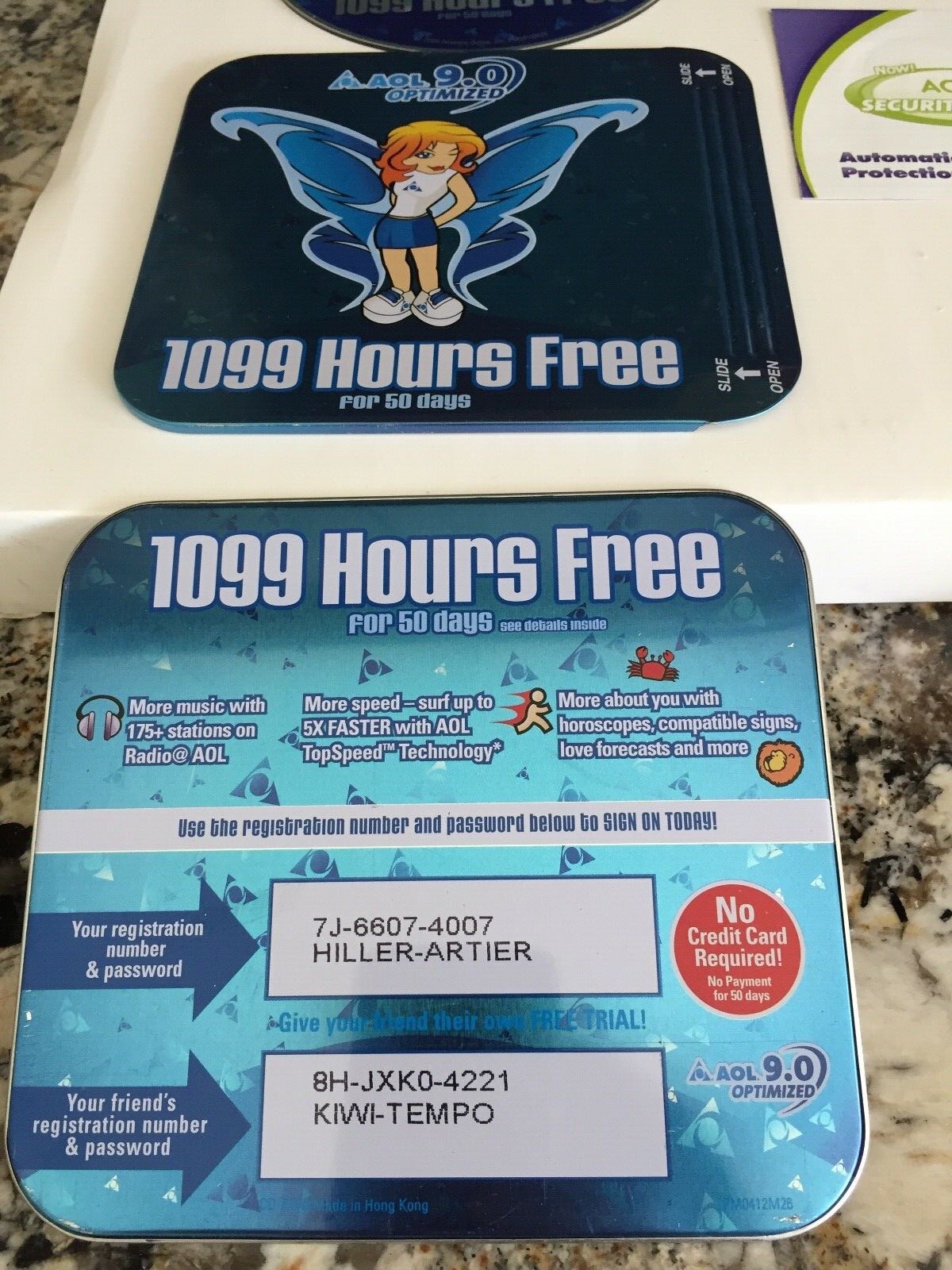I remember stopping into the monster for happy hour and people were using them as coasters. Discover the magic of the internet at imgur, a community powered entertainment destination. Aol trial disc i found in a old box. Aol's first significant step into direct the disks contained a free trial for aol (usually pegged to a number of free hours online. In exchange for being in the chatroom for certain hours and moderating, aol would grant her free hours.